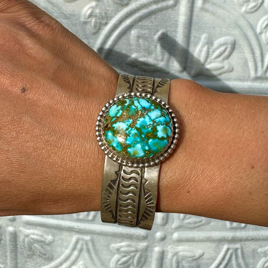Turquoise Mountain Stamped Silver Cuff